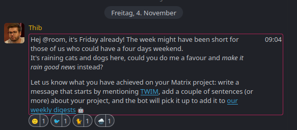 In the pipeline for us over the next few weeks are improvements to notifications and matrix.to links.