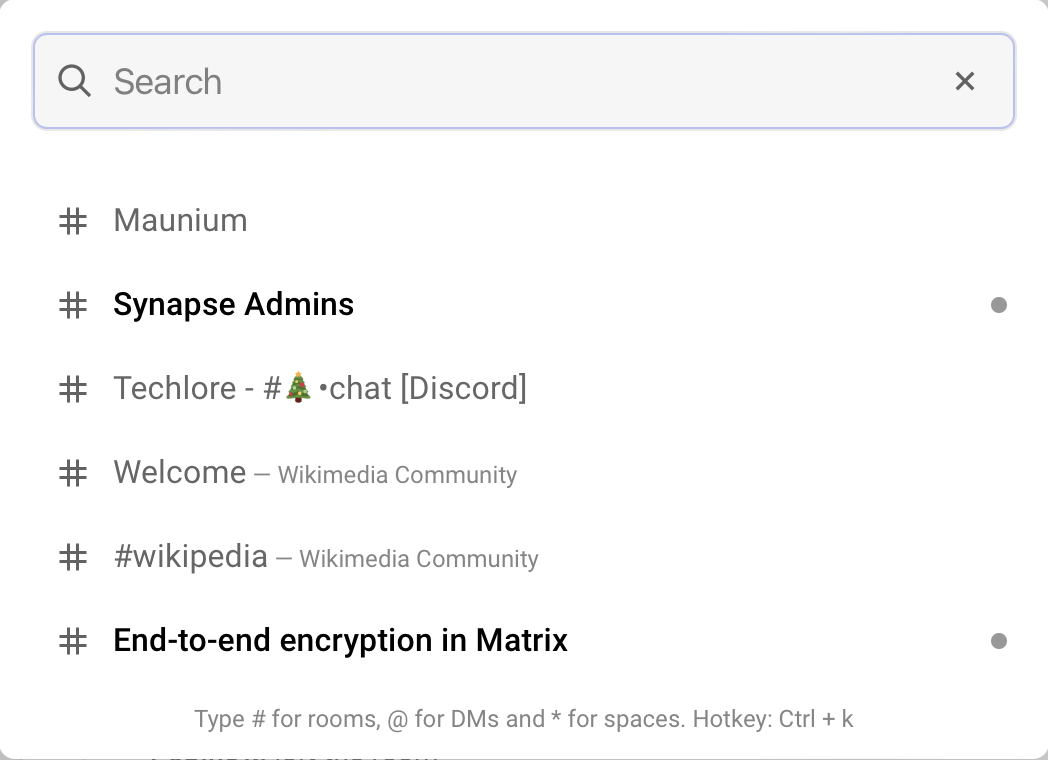 • First milestone reached on Information Architecture! To try it out, enable β€œThreaded messaging”, β€œUse new room breadcrumbs” and β€œNew spotlight search experience” in the Labs settings.