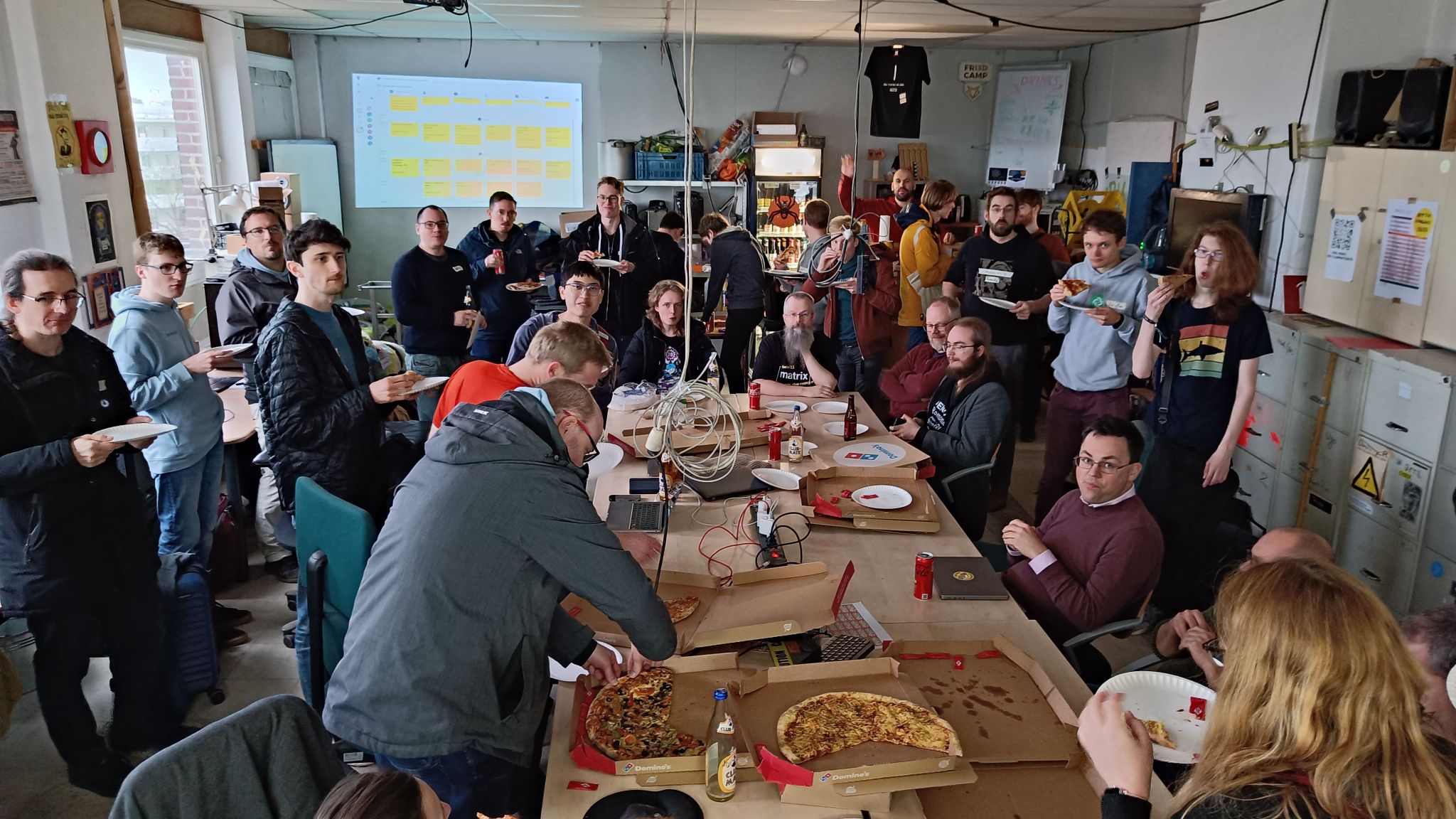 As the organisers, Yan and I (HarHarLinks) want to express our gratitude to the incredibly hospitable people from Hackerspace Brussels (HSBXL), especially Jurgen who helped a lot with prep in advance and BeachyHead who spent the whole day accommodating the sudden wave of arriving Matrix enthusiasts. Further, we would like to thank Famedly and Nordeck who's generosity enabled us to provide free-as-in-beer food π and drinks π» to everyone at the event through their financial support.