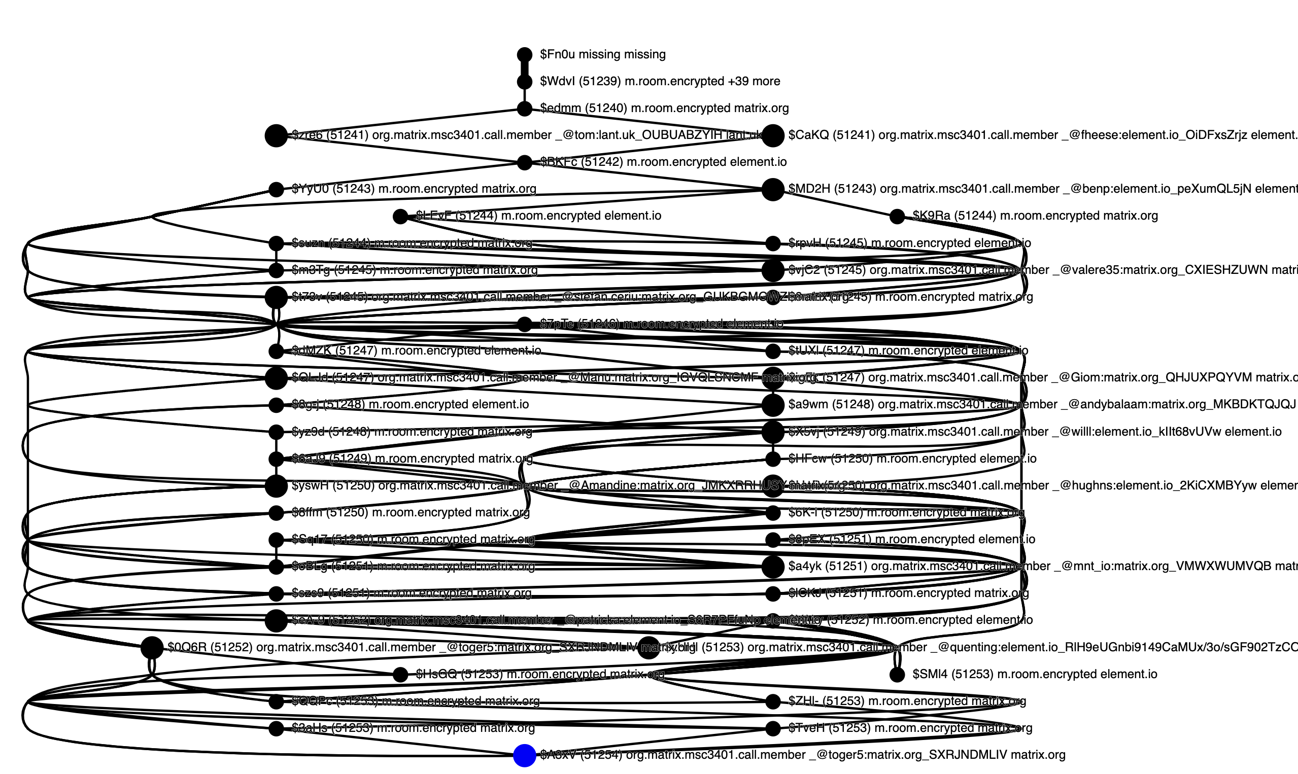 So for instance, the layout of an Element Call-related DAG explosion that TARDIS entirely failed to visualise last week, which looked like this: