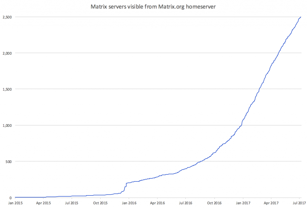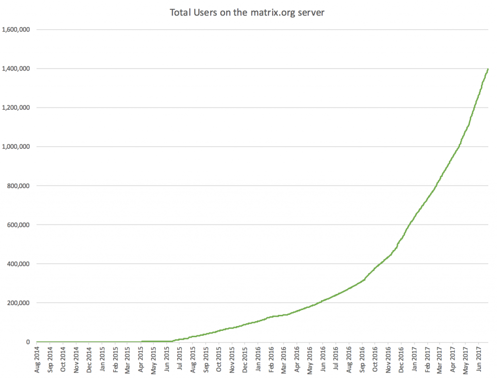 As many people know, Matrix.org development has historically been exclusively and very generously sponsored by a large multinational telecoms infrastructure company for whom most of the core team once built telco messaging apps. However, despite the project progressing better than ever (more on that later), we have just had our funding dramatically cut by >60%. [Update: as of Aug 2017 it is effectively cut entirely, with enough $ left over to cover until end of October.]